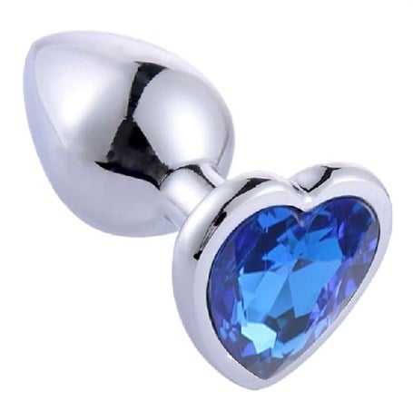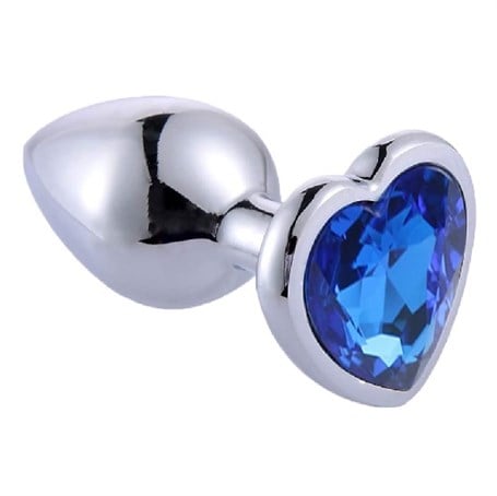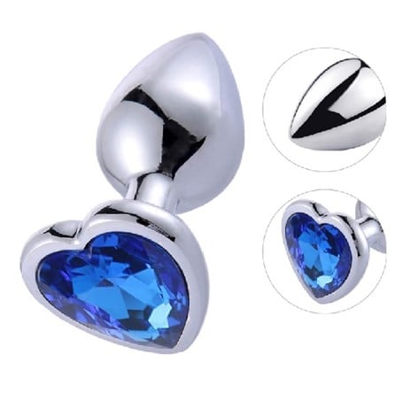 Pürüzsüz ve parlak yüzeye sahip, paslanmaz çelikten yapılmış, arka kısmı kalpli mücevher taşlı anal tıkaç (plug).