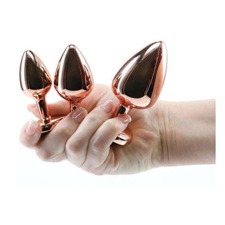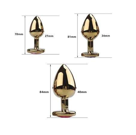 Kalp Mücevherli Paslanmaz Çelik Altın Gül Anal Plug Alıştırma Seti - BDM1529