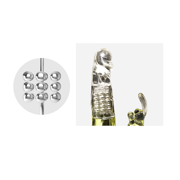 * İçinde bilyalar ile rotasyon özelliği sağlayan klitoris uyarıcılı vibratör penis * Ayarlanabilir titreşim özelliğine sahiptir. * Çift titreşim motorludur. * Vibratörün baş kısmı rotasyonlu titreşimler sağlarken klitoris kısmında bulunan tavşan kulakları sizi hazzın doruklarına çıkaracak. * Hem vibratörün baş kısmında hem de stimülatör kısmında titreşim motoru bulunmaktadır. * 3 adet AAA kalem pil ile çalışır * Yüksek kaliteli silikondan üretilmiştir. * Kadifemsi pürüzsüz yapıdadır. * Ergonomik yapısıyla kadın vücuduna tam uyum sağlar. * Klitoral uyarıcılıdır, klitoral stimülatör olarak ta kullanıma uygundur. * %100 su geçirmez. * Sessiz çalışır. * Esnek ve pürüzsüz yapıdadır. * Cilt dostu malzemeden üretilmiştir. * Kolay temizlenir. * Uzunluk : 22,5 cm * Boyut : 3 cm * Ağırlık : 175 gr