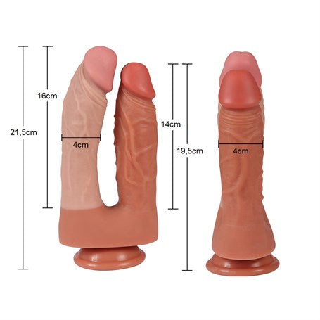 Gerçekçi detaylara ve yumuşaklığa sahip, aynı anda hem anal, hem vajinal deneyimler yaşamanızı sağlayacak iki uçlu, vantuzlu dildo.
