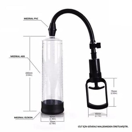Şeffaf silindir hazne, kolay tetik kollu penis pompasıdır.